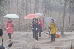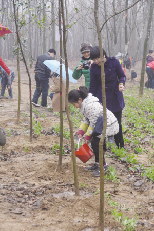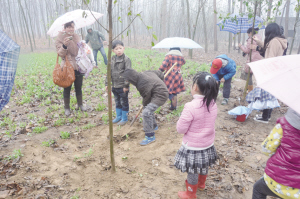 雨中植树 其乐融融