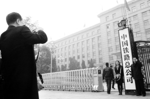 末任铁道部部长、新任中国铁路总公司总经理盛光祖与领导班子成员到场,与新门牌合影。