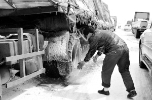 当日,因大雪天气影响,西藏当雄县109国道3684段附近出现大范围冰雪路面,纳龙村附近拥堵路段长达数公里。