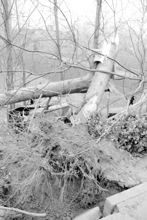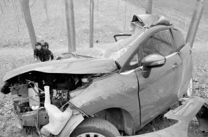 当日14时50分,记者在事发现场看到,一棵直径25厘米左右的杨树被拦腰撞断。距离杨树不远处的路沟里,一辆车牌号为豫PK77**的枣红色轿车车体完全变形,车牌、电瓶、车灯散落一地。