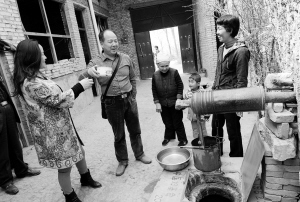 3月23日,帮助捐建“母亲水窖”的企业代表在柴玉村回访,品尝新建成“母亲水窖”里的水。