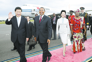 3月24日,国家主席习近平乘专机抵达达累斯萨拉姆尼雷尔国际机场,开始对坦桑尼亚进行国事访问。坦桑尼亚总统基奎特和夫人到机场迎接习近平和夫人彭丽媛。