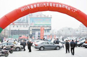 继前两站在太康、鹿邑举办汽车县市巡展实现良好开局后,3月23日至24日在郸城举办的汽车县市巡展人气更足,商机更旺,在当地引起不小的轰动。周口及郸城县20多家汽车经销商携百辆新锐车型,将广场北侧呈“U”字形围了起来。两天时间,引得许多郸城市民到车展现场了解咨询、赏车购车(如图),不少人以平时享受不到的优惠价格购得了心仪已久的爱车。