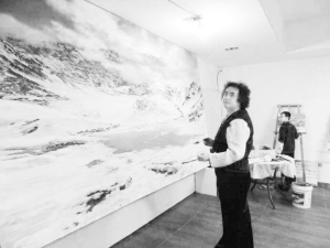 蔚国银敢想敢干、说干就干的劲头一般人很难做到。始于2010年的蔚国银油画展,目前在全国已经进行了30多站。大家想想,从北京出发,一路反复折腾,最后到达兰州,大车小车,长途搬运、布展,其中辛苦,几人能够!但看准的事情,他都以军人的果敢坚毅立即执行,这种作风让人油升敬意!