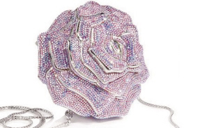 Judith Leiber的纯手工手包是玫瑰花瓣的形状,花叶由粉色奥地利磨砂水晶镶嵌,银色花边,下推按扣,包链可隐藏于内部。这款精致的晚装手包蕴涵了都市之夜的无限璀璨。玫瑰花瓣的设计更添独特魅力。