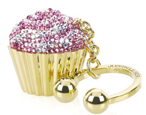 五彩水晶镶嵌的蛋糕挂链制作精细,金属杯型的外壳闪闪发光,链子的衔接处有设计师的加盖箍可以附加到钥匙或挂到包上。