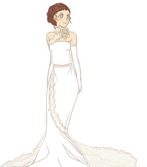 其实,婚纱的颜色并不重要,重要的是要与新娘的肤色相配。如果你的皮肤看起来比较白皙、细腻,看起来是非常透明的象牙色,头发的色彩感觉偏棕黄色、茶色,眼珠呈现棕黄色或者棕色,眼神明亮、轻盈对比,那么您在专业色彩诊断的类型里被称为“浅暖色彩”的类型,建议选择本白、乳白色的婚纱。