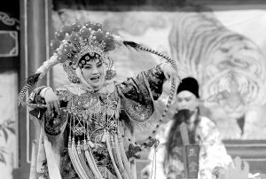 3月27日,演员在开机仪式上表演传统剧目《穆桂英大破天门阵》。