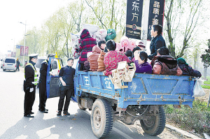 3月27日下午,在文昌公安分局交巡警道路检查点,民警查获一辆违规载人的农用三轮车。经核实,该车违规搭载17人。按照相关规定,交警让乘客转乘其他车辆,并严厉处罚了农用三轮车司机。