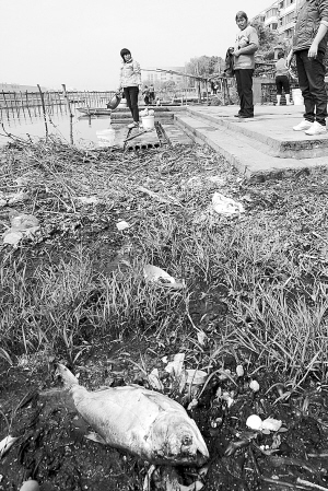 这是3月30日拍摄的浙江省绍兴市区越东小区门前河道里的死鱼。