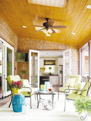 家具:宽敞一点的阳台或者顶层的露台,都可以在花草中间摆上一两张白色小桌椅,或者原木做条形长凳,当然也可以摆放铁艺的挂饰、别致的陶罐或者瓷器。大型的露台内可加上一把漂亮阳伞。(张华)