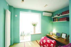 色彩较重的墙面空间除了用淡色系的软装饰品来中和色彩冲击力之外,在空出的墙面上放两道浅色隔板也能起到调节色彩的作用,另外,如果是在写字台等工作区的墙面放置隔板,还可以缓解写字台面的摆放压力,使桌面更加整洁。若是放在床头或者其他墙面,就可以放置一些家人的照片、生日礼物甚至是一盆清新的小绿植。