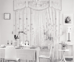 客厅是接待客人和日常生活之处,家具及软装饰应尽可能端庄大方,但也要适当彰显个性、品位。所以窗帘的面料选择面比较广,棉麻丝毛的面料垂感好、舒适,但不适合面对高温及强光;人造纤维或合成纤维的面料,经过特殊处理,相对比较抗皱和耐变色。如果是朝南的窗户,薄纱、薄棉或丝质的布料比较合适;朝北房间,可选择暖色并且有些厚重感的窗帘;如果有朝向东或西的窗户,那么遮阳的功能就显得比较重要。在选好面料后,接着就是构思风格了。
