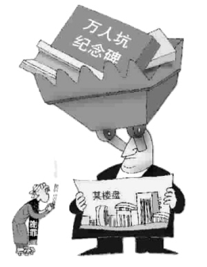 1940年至1945年,侵华日军在山东济南现试验机厂厂区内留下一座“万人坑”。中日建交后陆续有日本老兵来中国祭拜当年被杀戮的遇害者。日前“万人坑”遗址将要被开发成商业住宅,开发商觉得纪念碑太碍眼,派人清走了。