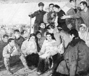 展览以3位画家相识四十年来的故事与作品为主线,叙述他们青年时代的理想、油画实践的轨迹,有启始于70年代3个自学少年的自画像,以及欧洲名作的临摹,一直到2011年各自的写生和创作。尽管3人的作品都很“牛”,但最吸引人的,无疑是陈丹青的作品。这不但因为陈丹青的名气使然,更因为现场所展他的画作,大部分是他30多年前在江浦生活期间留下的,这让参展的人倍感亲切。他的3件重要作品《进军西藏》《给毛主席写信》《泪水洒满丰收田》中,有两件早年就被江苏省美术馆收藏。这次重新展出,大家尤其感兴趣。