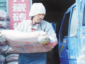 水泥搬运工——为家人多挣点钱,辛苦也是值得的。   项城市李寨镇政府 薛全伟