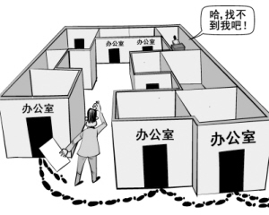 广西柳江县住房和城乡建设局局领导办公楼层,8个房间牌子上一律只标“办公室”,来办事的群众不知该到哪里找人。住建局副局长解释为办公室还未完全调整好,而柳江县住建局纪检组组长表示,由于上访户多,此举是为了防不听劝的上访户找领导。(4月15日《新京报》)