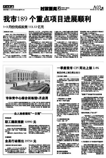 一季度我市CPI同比上涨2.4%