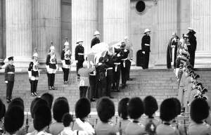 4月17日,在英国首都伦敦,撒切尔夫人的灵柩运抵圣保罗大教堂。