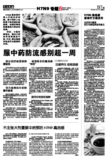 不主张大剂量服中药预防H7N9禽流感