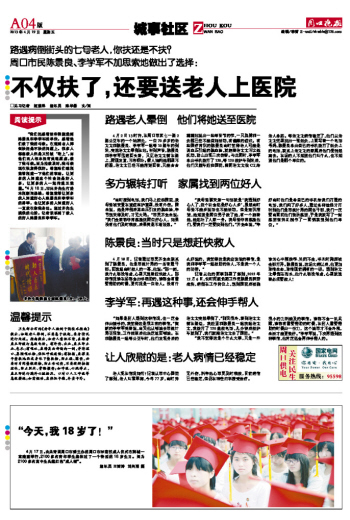 不仅扶了,还要送老人上医院