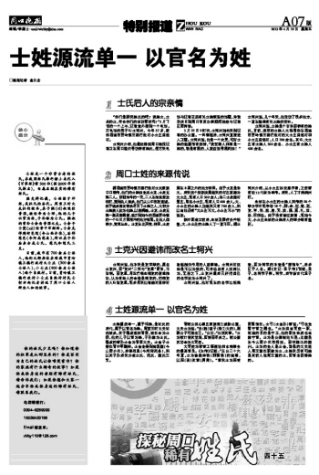士姓源流单一 以官名为姓