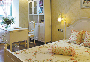 卧室 与整个家居风格保持一致,但增加了书写功能区,提高了卧室的实用性,还丰富了卧室的视觉效果(图③)。