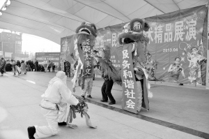 据悉,此次活动由展演区和展览区两部分组成。展演内容分舞蹈类、声乐类、语言类、戏曲类、杂耍类、传统武术类、器乐类七大类;展览内容分民间工艺书法美术展、红色收藏展两大类。图为民间艺人表演《舞狮》。