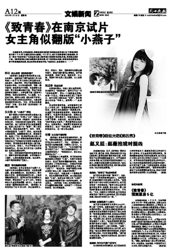 由赵薇首导,关锦鹏监制,李樯编剧的《致我们终将逝去的青春》(以下简称《致青春》)将于4月26日登陆全国各大院线。4月23日,该片在南京新街口影城试映,作为一部以“内地青春片”为卖点的电影,《致青春》小清新和现实味并重,首批观众褒多于贬。《致青春》绝大部分场景都在南京拍摄,对于南京观众来说,更亲切的是看到电影中那些熟悉的场景,观众边看边惊喜地讨论:“这是东大,这是南理工!……”