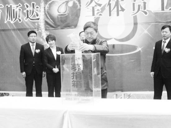 近日,万顺达集团董事长张全洪、万顺达百货总经理程英等公司管理层以及入驻商户、全体员工在万顺达百货广场为雅安地震灾区捐赠善款近8万元。 记者 田松平 摄 万顺达百货向雅安地震灾区捐款近8万元