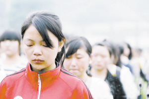 图为芦山中学的师生为在地震中逝去的同胞默哀