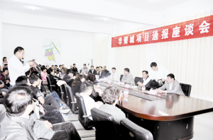 华耀城项目建设指挥部会议室人头攒动、座无虚席、暖意融融。下午3时,通报会开始,有关人员宣读了项目建设指挥部机构设置人员配备后,中国城乡控股有限公司副总裁、周口华耀城项目总经理朱奕龙开始介绍项目相关情况,话语从容而自信。
