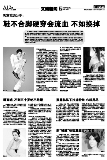 郭富城谈分手:鞋不合脚硬穿会流血 不如换掉
