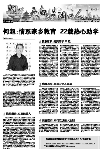 何超:情系家乡教育 22载热心助学
