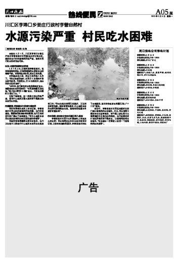 水源污染严重 村民吃水困难