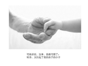 前几天,母亲来检查身体。过马路时,穿梭往来的车辆竟使她紧张得像个孩子,不敢前行半步。看着风中娇小孱弱的母亲,我的眼睛湿了。母亲老了,真的老了,已不是当年那个把我死死攥在手心里的护犊者了。无情的岁月在她的脸上身上镌刻满沧桑的痕迹。我轻轻牵住母亲的手,这曾温暖熟悉的手此刻却是那么陌生、苍老。母亲好像不习惯,忸怩着想要抽回。我使劲攥着,就像以前她怕我挣脱一样。母亲偷偷笑了,终于幸福地任由我牵着。我的泪却奔涌而出……