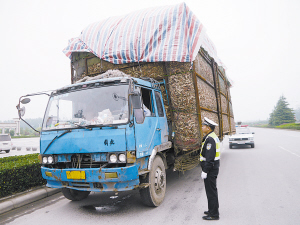 昨天17时许,一辆满载玉米芯的货车在周口市区周口大道被交警拦下。据文昌派出所交警雷杰介绍,这辆货车涉嫌改装,且货车司机无驾驶证、行车证。交警暂扣了这辆车,并按照相关交通法规对违规司机进行处罚。司机说,他是从商水出发,往鹿邑一家发电厂送玉米芯,没想到路过周口市区时被交警抓了个正着。