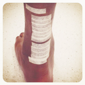由于左脚韧带撕裂,科比缺席了洛杉矶湖人本赛季最后的几场比赛,同时也错过了球队季后赛首轮与圣安东尼奥马刺的对决。在受伤之后的第二天,科比就接受了韧带修复手术。接下来的日子里,科比一直在通过社交媒体向公众展示着自己左脚的情况,我们一同见证了他拆线,穿上重重的保护靴。而这一次,科比的左脚已经可以摘掉保护靴正常着地了。