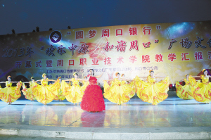 本报讯 5月9日晚7时,周口市2013年“欢乐中原·和谐周口”广场文化活动开幕,市区偌大的五一广场上,七彩霓虹点亮夜空、流光溢彩、绚烂无比,欢快的歌舞承载着“中国梦·周口梦”激情飞扬。
