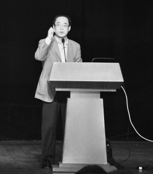 昨日,来自上海交通大学的著名学者高胜长教授受杨氏英语学校的邀请,做客周口沙颍读书讲坛,为我市广大英语爱好传授其独特的高效英语教学法。图为上海交通大学的著名学者高胜长教授。(王珂 摄)