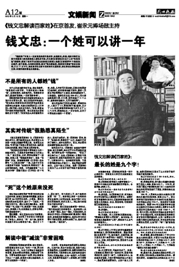 钱文忠:一个姓可以讲一年