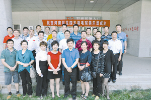 本报讯 为促进我市羽毛球事业的发展,在相关部门的支持下,我市首个由酒企冠名的羽毛球俱乐部——河南祥龙四五羽毛球俱乐部于5月13日上午正式揭牌,来自我市各地的部分羽毛球爱好者代表参加了揭牌仪式(如图)。河南祥龙四五酒业总经理李东表示,作为本地企业,四五酒业曾冠名河南建足球队,今天又成立祥龙四五羽毛球俱乐部,今后还将在做大做强企业的同时,积极承担社会责任,回报家乡,积极倡导和推动全民健身运动,支持社会公益事业的发展。