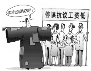 日前,湖北省洪湖市1000多名教师停课在政府大楼前陈情,认为工资太低。一名教师称,很多工作二三十年的高级教师月薪仅2000多元。市长夏锡璠低姿态向教师们坦承,穷人难当家,自己每月卡上的工资也只有2440元。