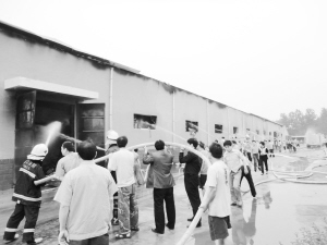 发生火灾的项城市纺织有限公司位于该市产业集聚区内。着火点是该公司唯一一间用来储存原棉的仓库。昨日12时许,记者接到报料后赶到事发现场,看到仓库上方黑烟滚滚,消防官兵和厂区职工正一起扑救。透过仓库窗口,记者看到里面火焰猛蹿,被火烧过的“黑棉球”滚落在仓库门口。由于火势过猛,消防官兵一时忙不过来,由厂区职工自行扛起的高压水枪几度“失控”,喷向围观人群。