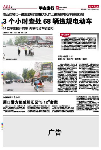 3个小时查处68辆违规电动车