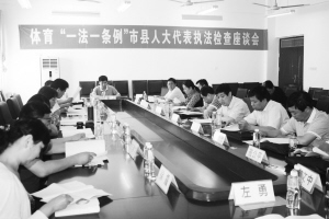 近日,市县两级人大代表检查郸城县体育“一法一条例”贯彻落实情况。(丁超 摄)