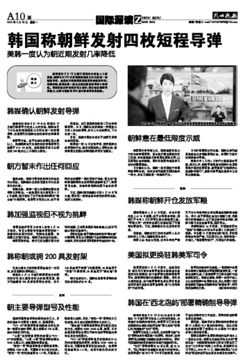 韩国称朝鲜发射四枚短程导弹