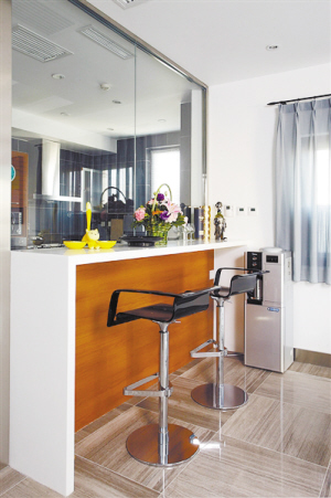 并不是所有的吧台都与厨房相连,它也可以出现在客厅,作为一个角落的风景,可以与房间的整体装修很搭配,也可以设计得别具匠心,显示主人的独特品位。天气渐热,利用吧台来顿简洁的晚餐正当时。