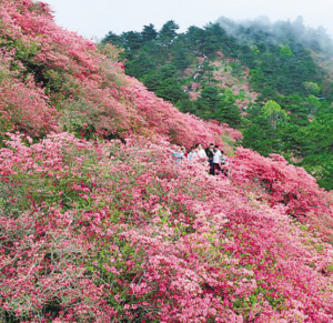 井冈山被誉为世界杜鹃花资源的宝库。绵延333平方公里的景区内,杜鹃花既有灌木又有乔木,品种众多,目前查明的有32种,其中包括井冈山特有的珍稀树种——开淡紫红色花、具有香味的井冈山杜鹃。
