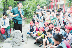 本报讯 5月25日10时许,周口晚报组织100余名小记者及家长一同参观了位于市区工农南路的周口华威民俗文化博物苑。在工作人员的带领和讲解下,小记者和家长分别参观了华威百狮园、艺术馆及古碑廊,接着参观了博物苑收藏的古家具、古陶瓷、农耕、字画、墓志铭等日常生活、学习用具,了解了我国各个时期民俗文化。小记者纷纷拿起手中的笔和相机,认真地记录和拍摄。